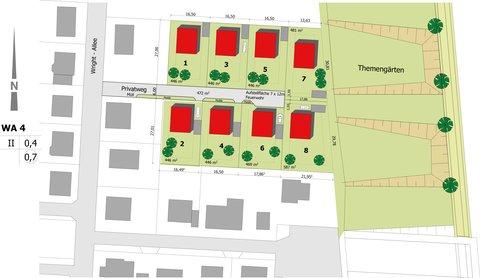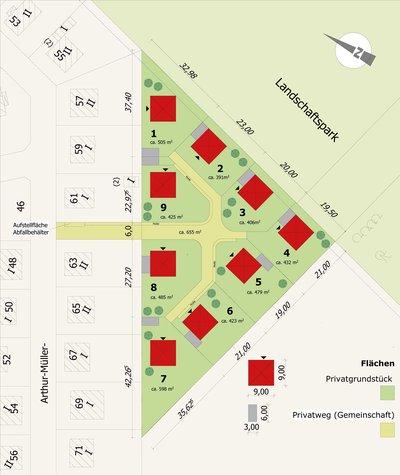 - Grundstücksgrößen von ca. 391 m² bis 598 m²