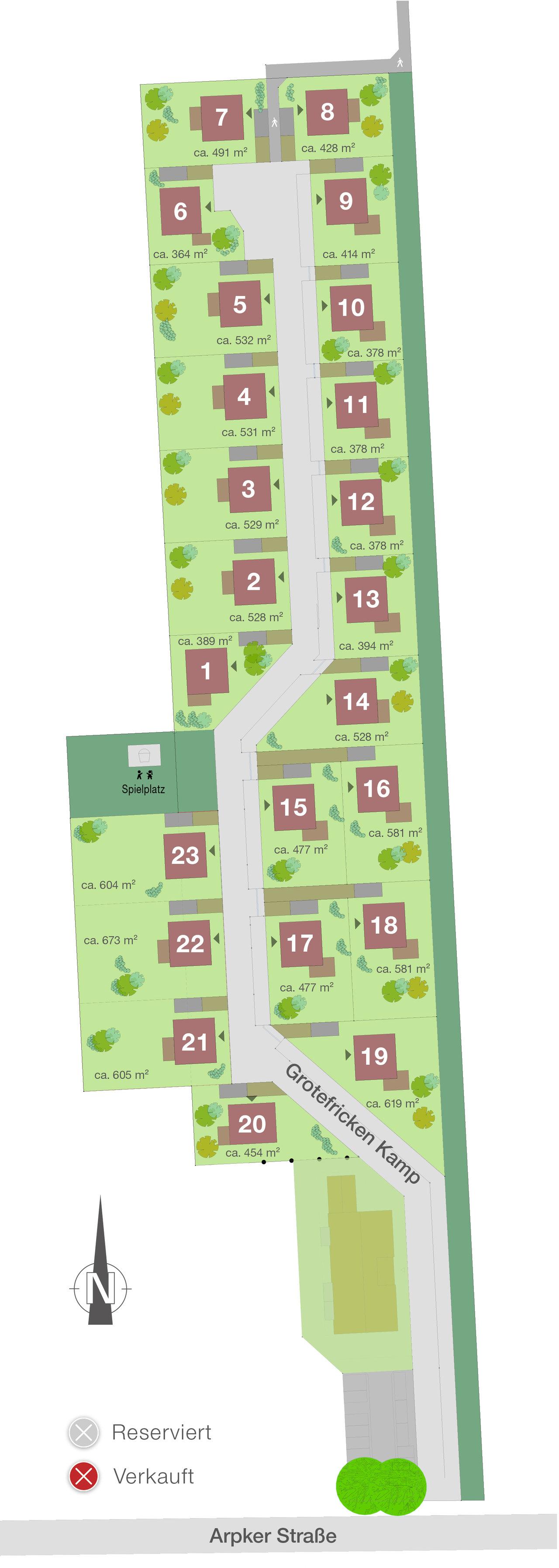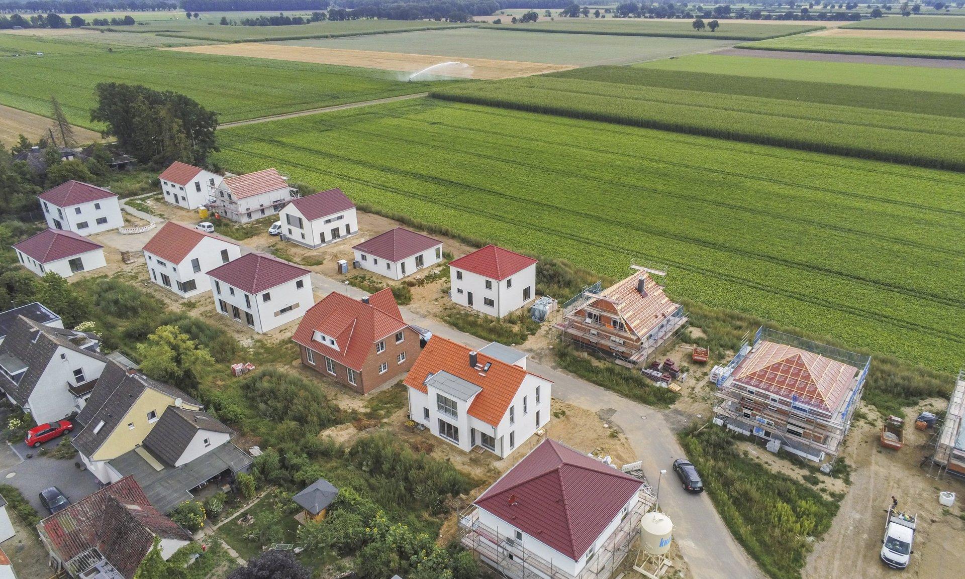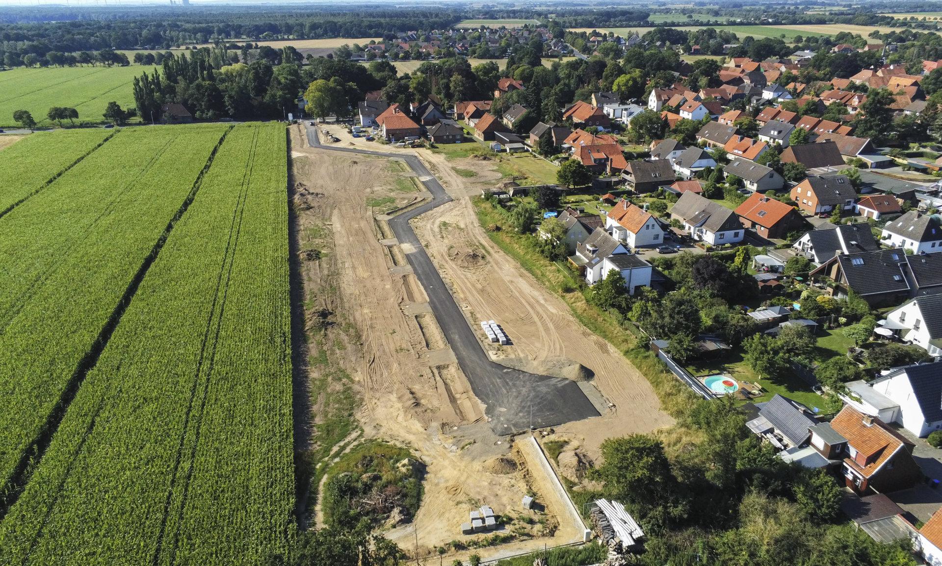 Direkt am Feldrand, zwischen der Arpker Straße und Im Wüsten Feld, mit Blick in die Landschaft baute HELMA 23 freistehende und individuell geplante Einfamilienhäuser zum Kauf. Erschlossen wurden die Häuser über eine ruhige Sackgasse, die den familiären Charakter des dörflichen Neubaugebiets perfekt unterstreicht.